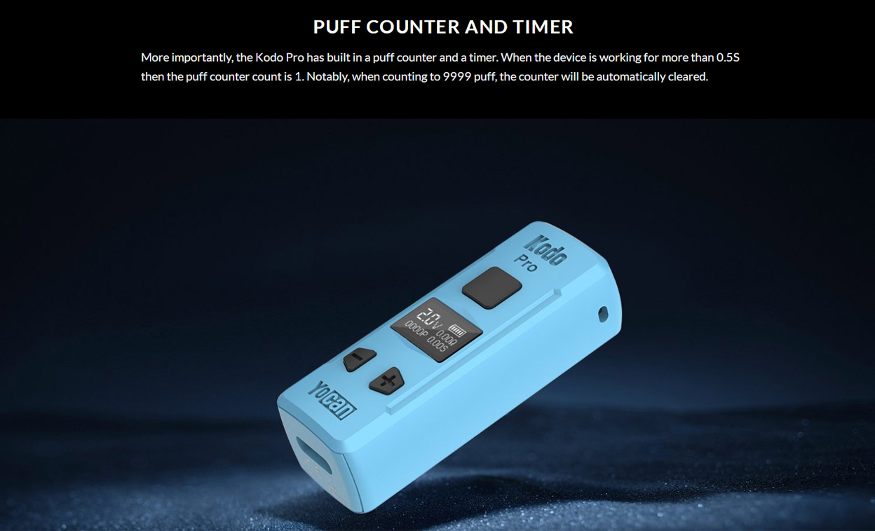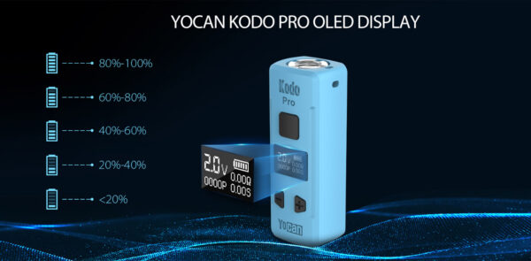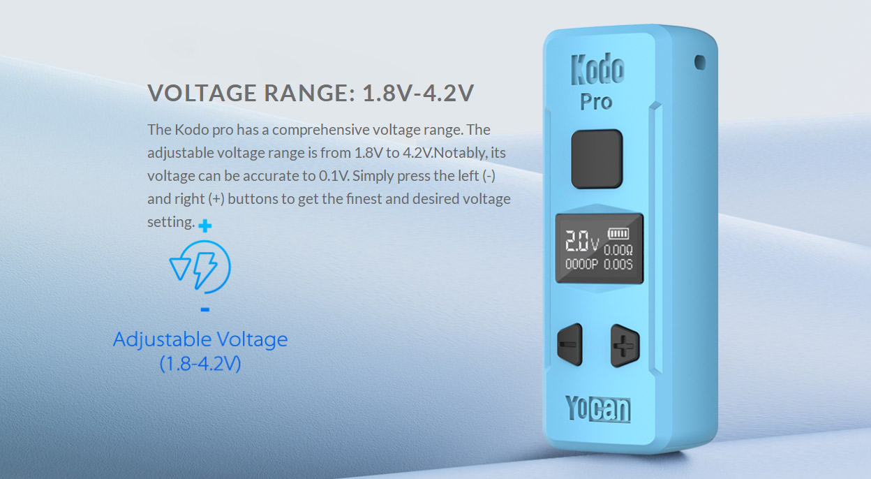 The Yocan Kodo Pro is a such a tiny little device, that we wonder how it packs so much power and functionality. It fits all 510 carts, and has all the features you would expect like preheat and adjustable voltage. The voltage can be increased in 0.1V increments to fine tune your taste. It’s so small but so good.